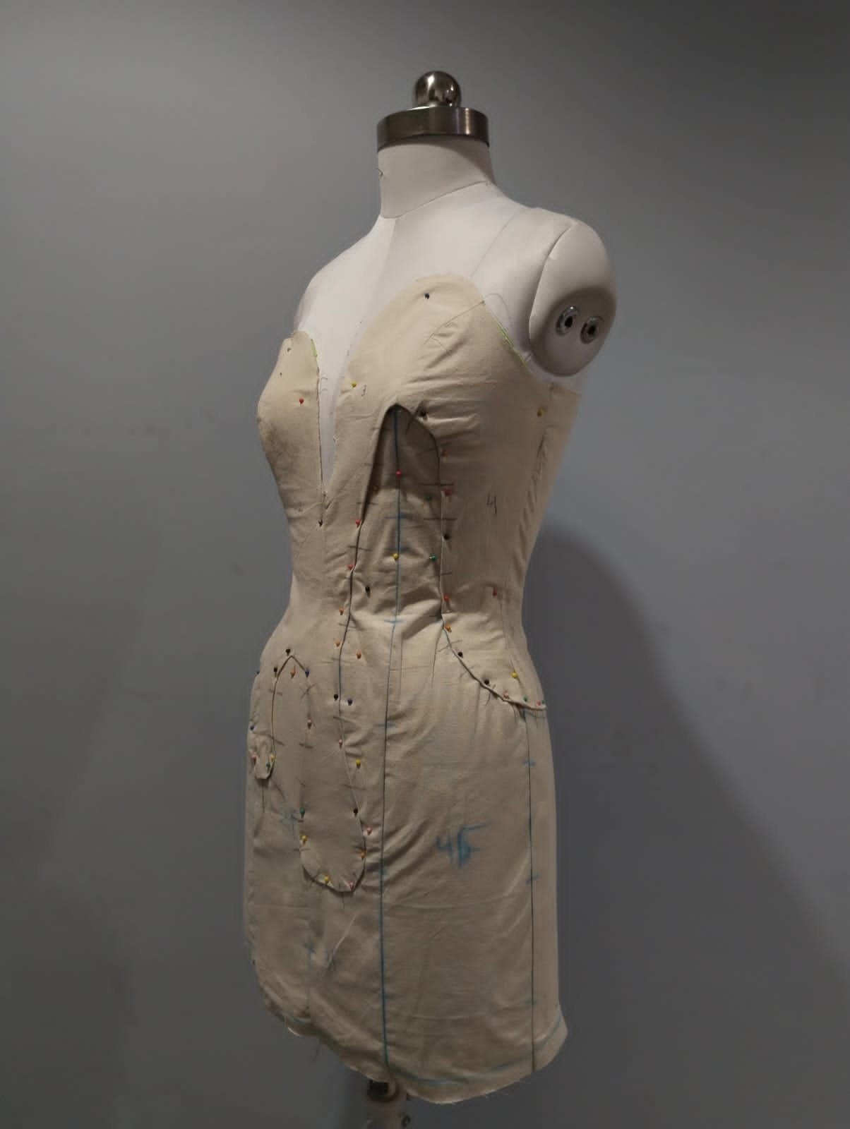 - Understanding the Grain: Students began by "squaring" their muslin, learning how the grainline dictates the drape, fall, and movement of a garment.